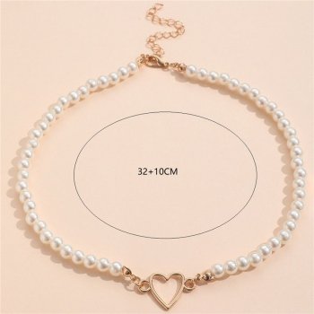 - Features an elegant link chain with a heart-shaped pendant, adorned with imitation pearls.