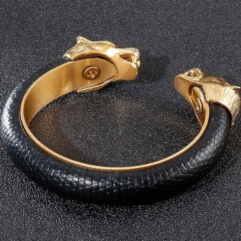 Seize the opportunity to express your boldness and sophistication. Add this Gold-Plated Stainless Steel Lion Head Cuff Bracelet to your collection today and step out in unparalleled style!