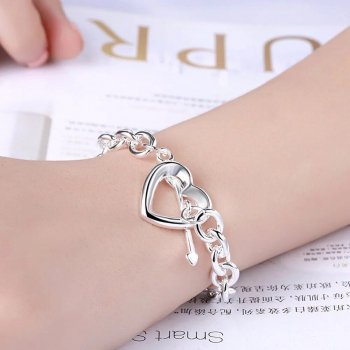 Meticulously crafted from high-quality 925 sterling silver, this charm bracelet features a delicate heart and arrow design, symbolizing love’s unerring path. With its sleek and polished finish, the bracelet showcases the luminous beauty of sterling silver, stamped with the 925 mark to guarantee its authenticity. Its lightweight design, weighing just 11 grams, ensures comfortable wear throughout the day or night.