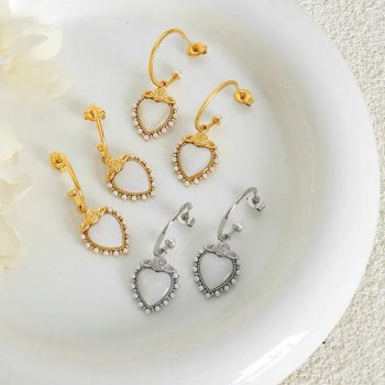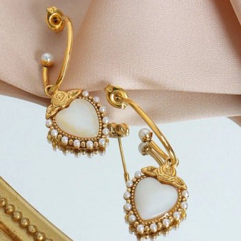 Indulge in the beauty of our Stylish Stainless Steel Gold Plated C Shaped Sea Shell Heart Pendant Earrings for Women. Elevate your style, celebrate your individuality, and let the world see the radiance within you.