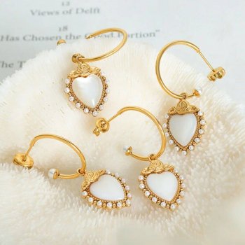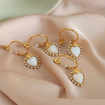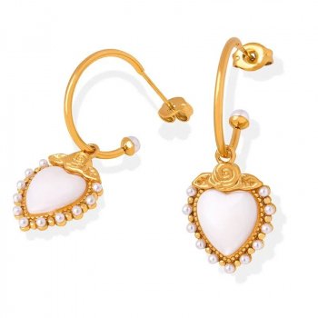 Crafted with precision from high-quality Stainless Steel and adorned with a pristine White Shell PVD, these earrings boast a luxurious Gold Plating that exudes opulence. The C-shaped design intricately frames a delicate sea shell heart, creating a stunning visual symphony that captures attention.